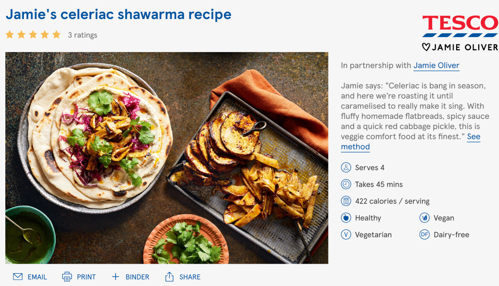 I named new recipes and wrote all Tesco’s web and print copy for their partnership with Jamie. This was all about creating joyful, accessible, budget-friendly content that would resonate with families across the UK. Jamie’s tone of voice acted as a mark of quality and confidence.