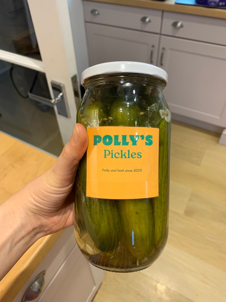 From the vinegary fumes sprang Polly’s Pickles, a tongue-in-cheek pickle brand that plays with common trends and conventions I’d noticed in food marketing.